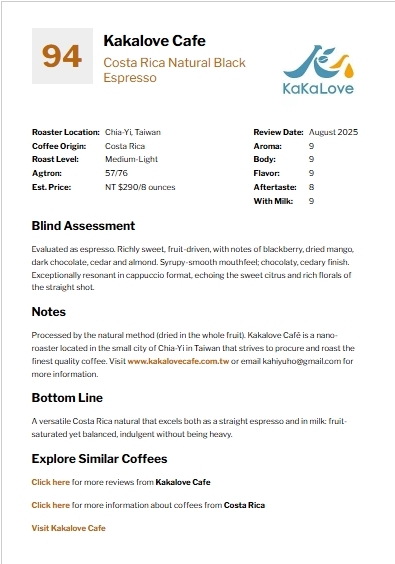 🐈⬛CR94-Costa Rica Natural Tarrazu Black Espresso Review