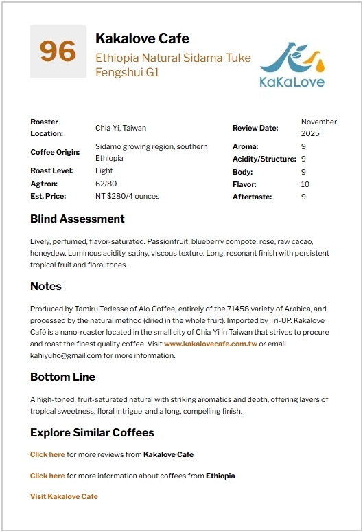 🐴CR96-[Tamiru Alo Coffee] Ethiopia Natural Sidama Tuke Fengshui G1 4oz