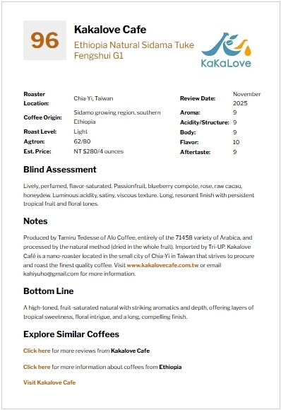 ✨Coffee Review規定,分數只能當批豆子或是一年為期限,分數都是最新的。